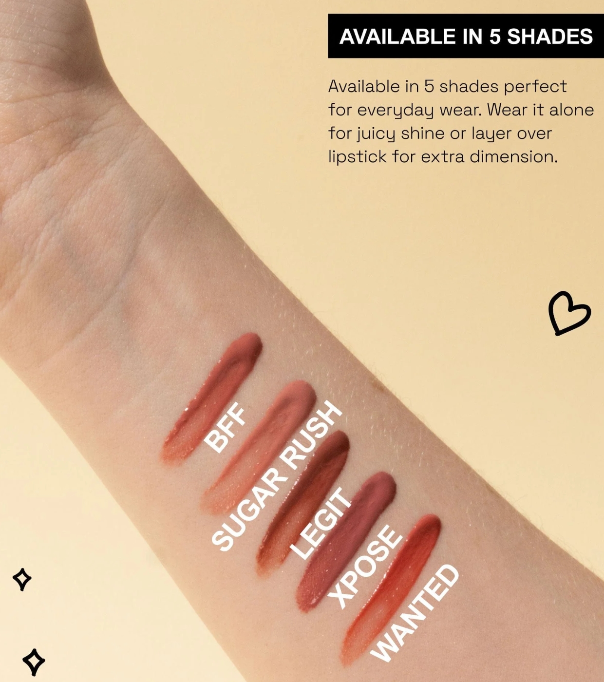 - Apply over your favorite lipstick to add extra shine and dimension.