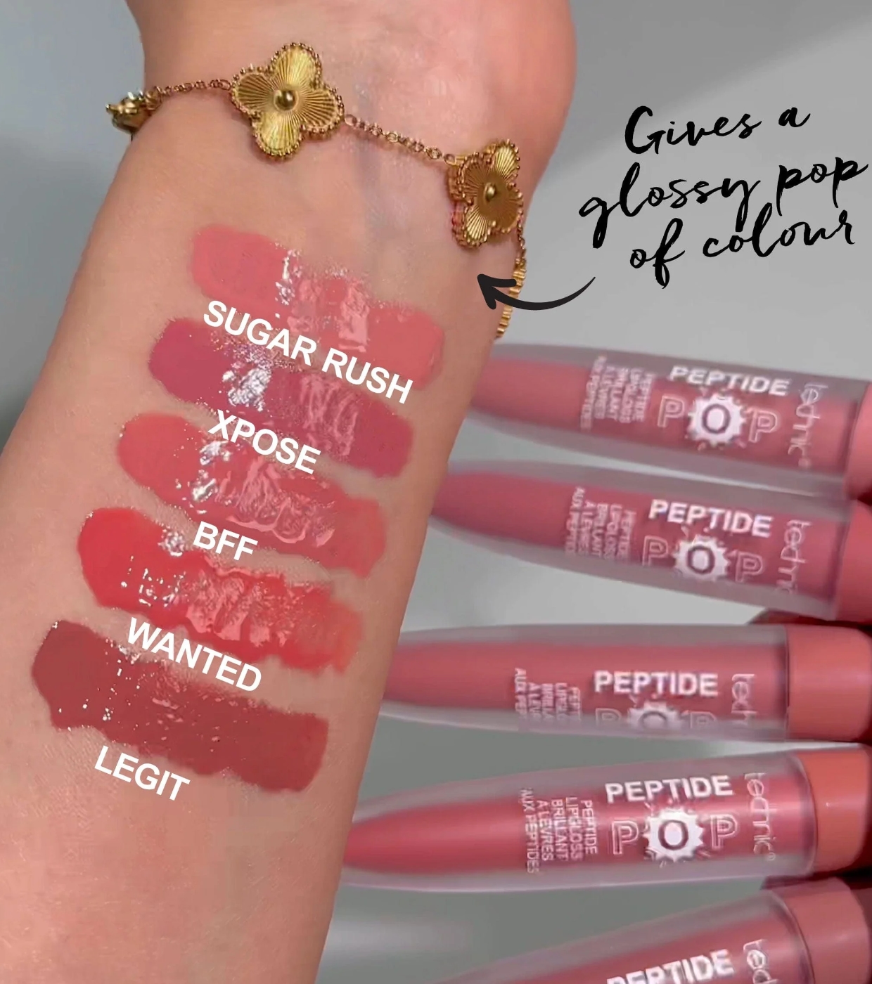 Achieve the perfect balance of high-impact color, hydration, and fuller lips with Peptide Pop Peptide Pop Lip Gloss .