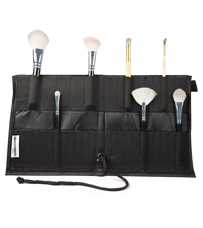 Carry and use your brushes like a pro. This hard stand is perfect to carry your brushes flat and keep them accesible when in use. Its nylon structure will not bend and stand right when needed. The Strip between the ends allows transport case when closed and is used to secure foot with visible brushes gift set.