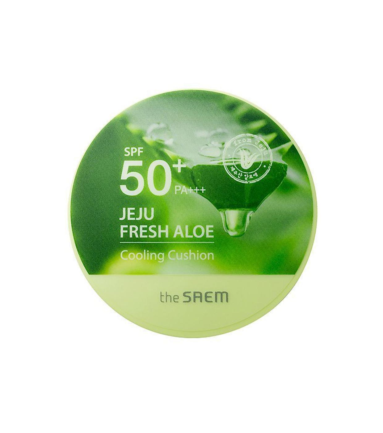 Makeup in cushion format with sunscreen SPF 50+ Jeju Fresh Aloe by The Saem.