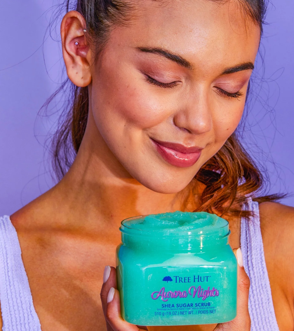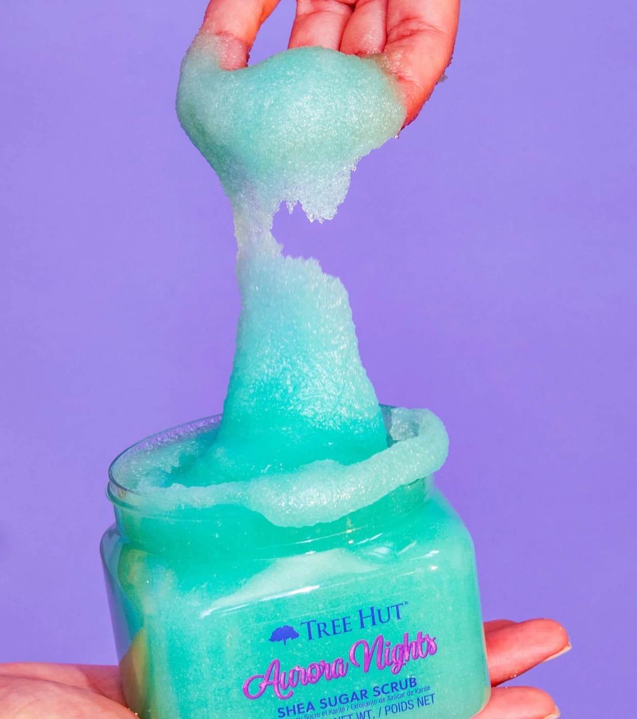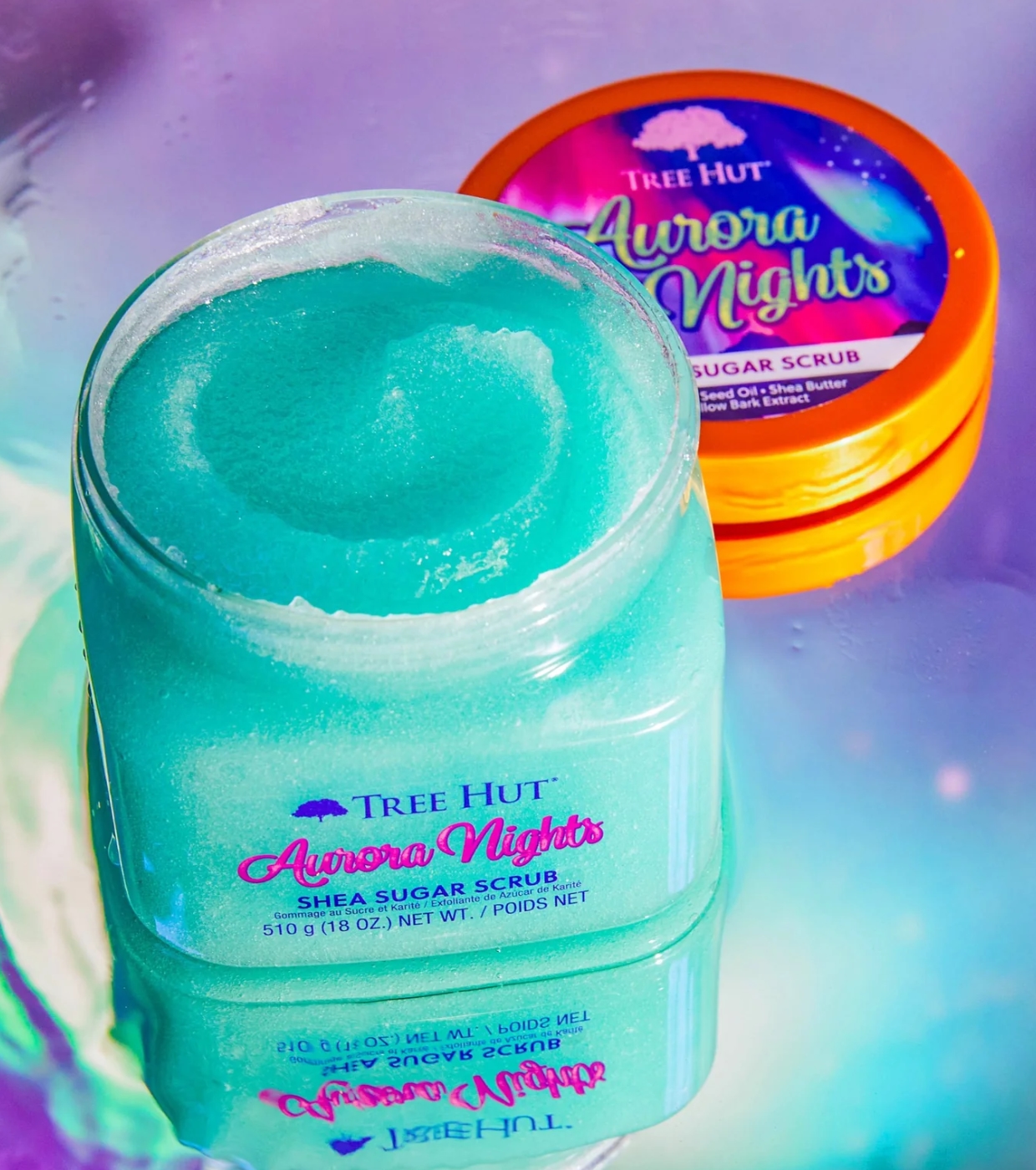 Enhance your shower routine and transform your skin with the Aurora Nights body scrub from Tree Hut .