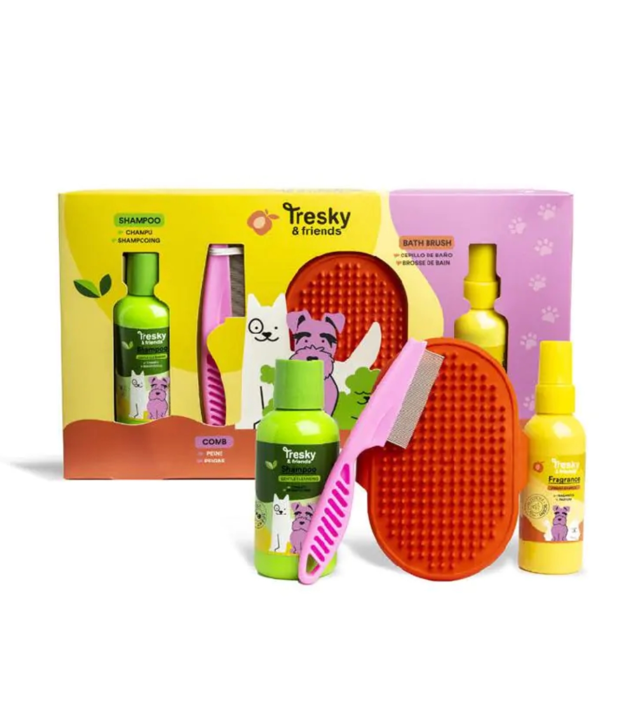 Turn your dog's bath time into a complete pampering experience with this Tresky & Friends set designed to soothe their skin and keep their coat clean, soft, and shiny.