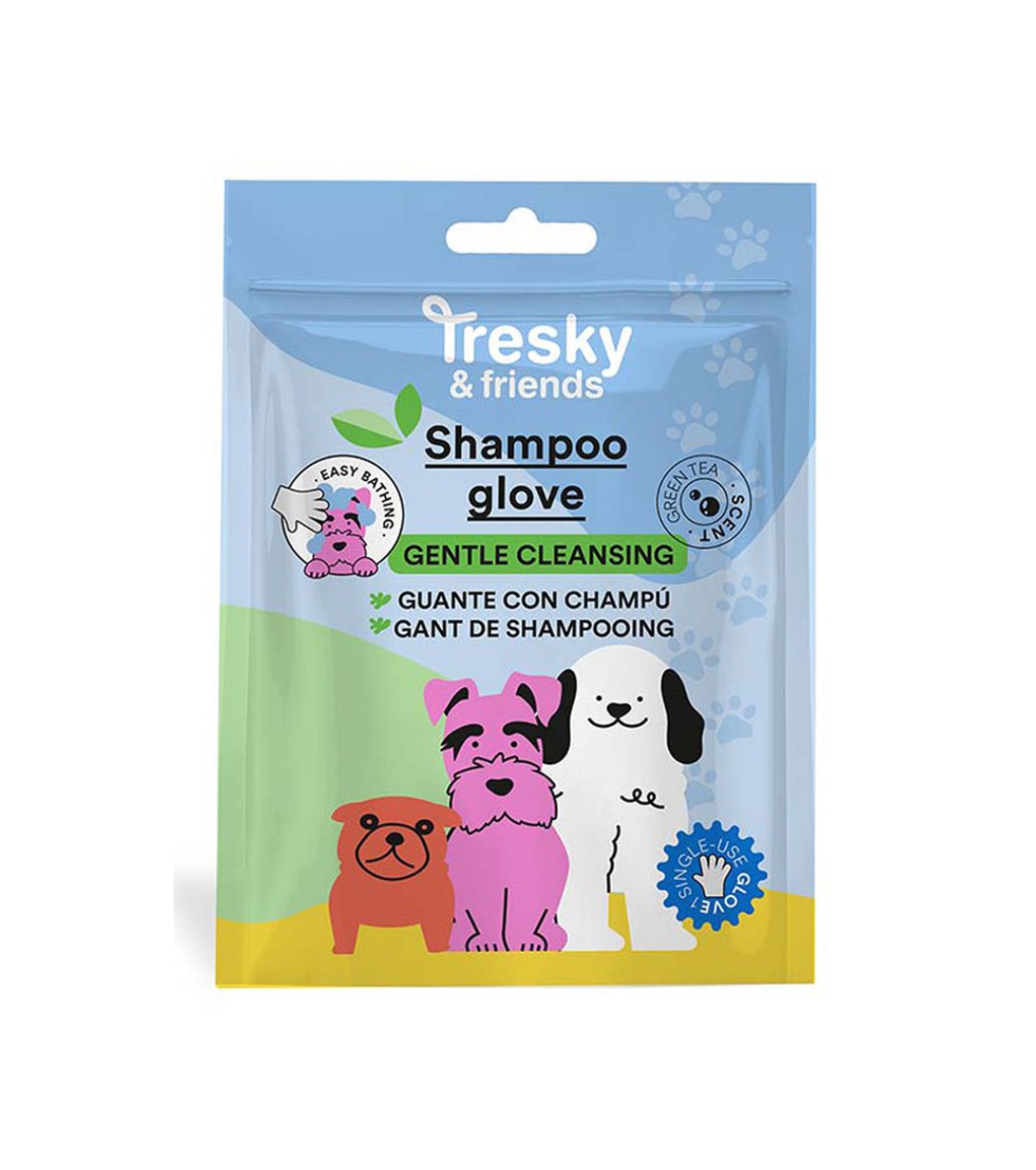 The TRESKY & FRIENDS shampoo glove is a practical solution designed to simplify the daily hygiene of dogs and cats, combining cleaning and massage in one simple step.