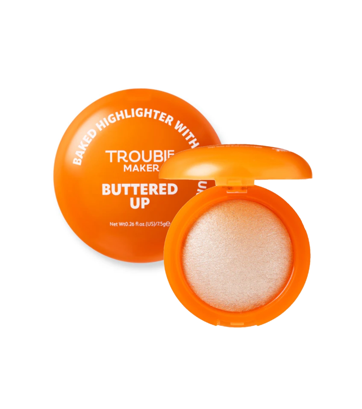 The Buttered Up Baked Highlight from Trouble Maker is a baked highlighter that gives the skin a warm, soft, and luminous glow, with a buttery, silky finish that blends perfectly into the face.