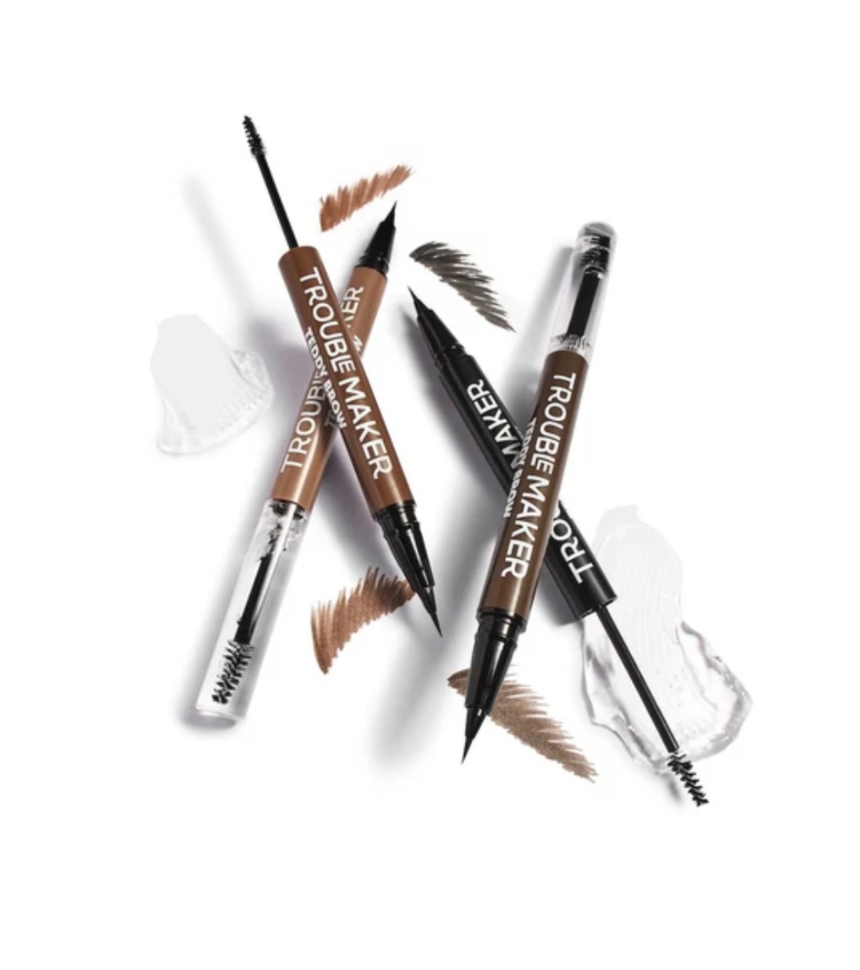 Get defined, natural-looking eyebrows with Trouble Maker's 2-in-1 eyebrow gel .