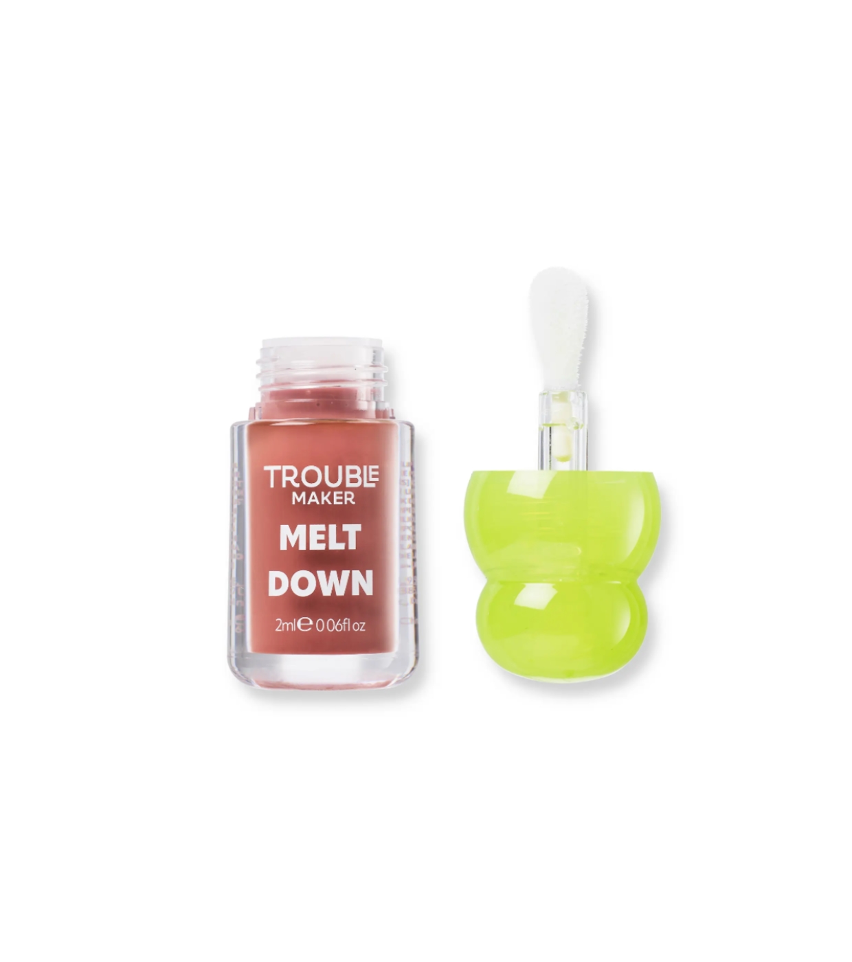Trouble Maker's Melt Down Lip Oil is pure self-care in a tube: an irresistible combination of nourishment, shine, and softness for irresistible lips.