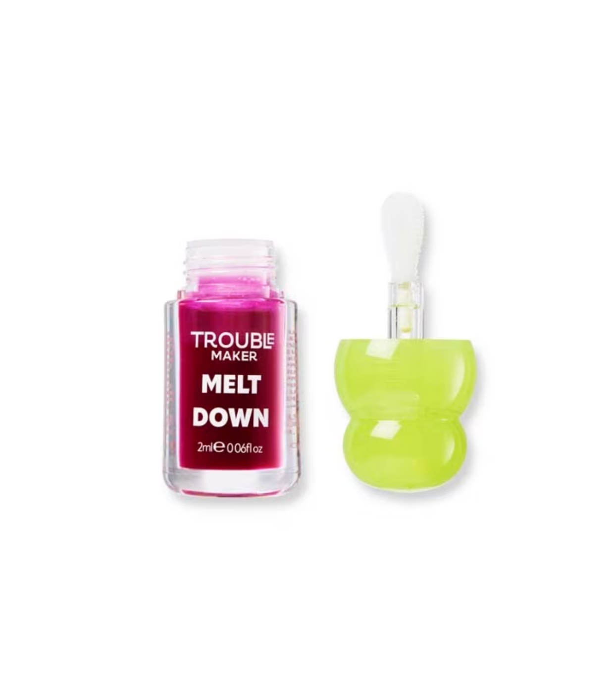 Trouble Maker's Melt Down Lip Oil is pure self-care in a tube: an irresistible combination of nourishment, shine, and softness for irresistible lips.
