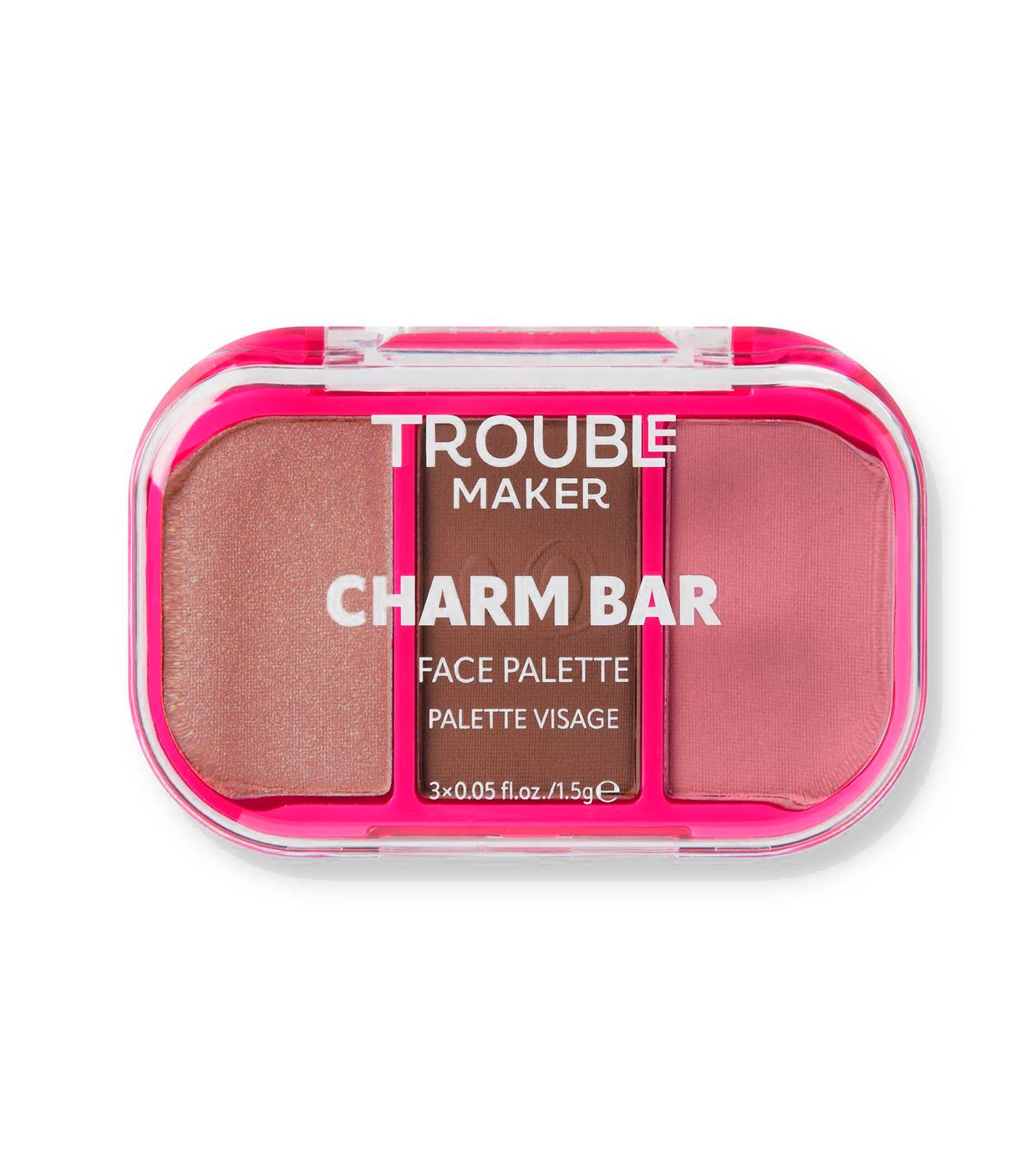 The Trouble Maker Charm Bar Face Trio Sweet Escape Palette is your perfect ally for a radiant and dimensional face.