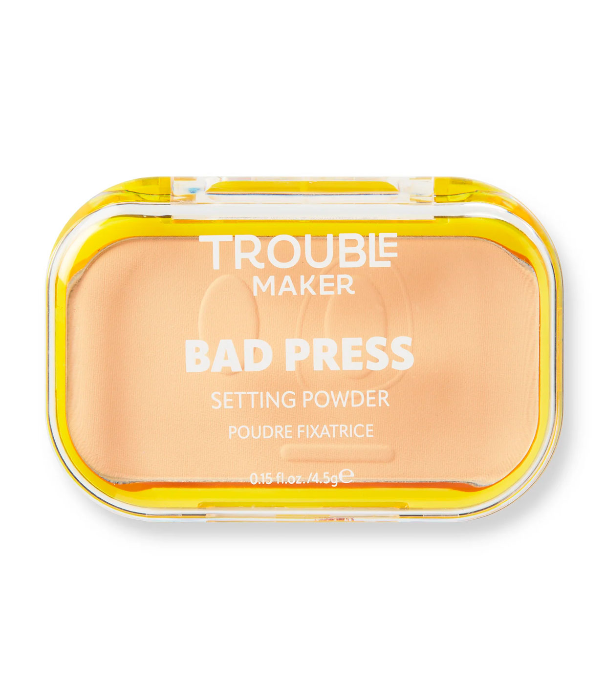 Trouble Maker Bad Press setting powder is the secret to a soft, natural, shine-free matte finish that keeps your makeup looking flawless for hours.