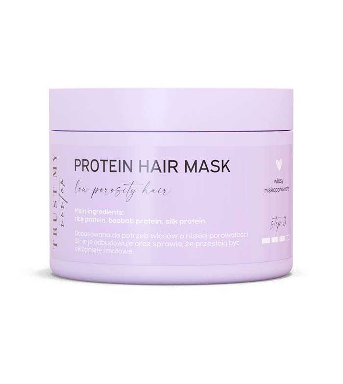 A mask with low molecular weight proteins, suitable for low porosity hair.