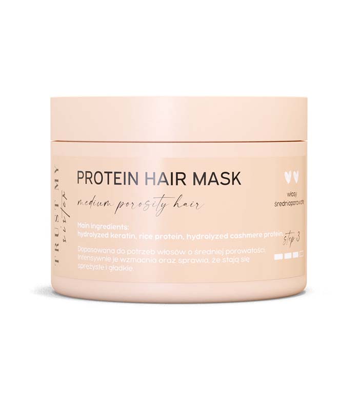 A mask with low molecular weight proteins, suitable for medium porosity hair.