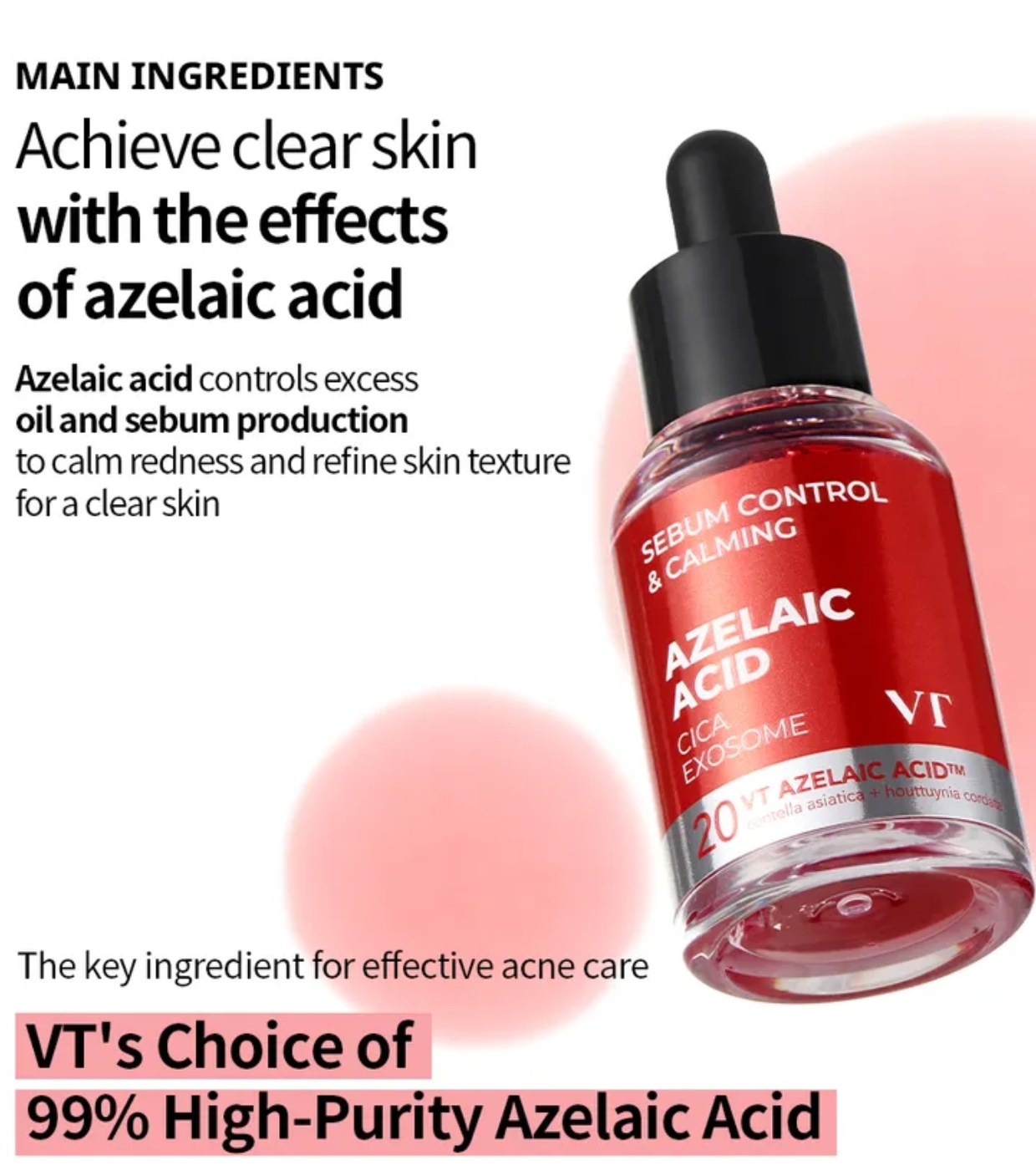 This calming serum Azelaic Acid CICA Exosome from VT Cosmetics is formulated with high concentration azelaic acid to offer complete action on sensitive, acne-prone or redness-prone skin, helping to visibly improve its appearance.