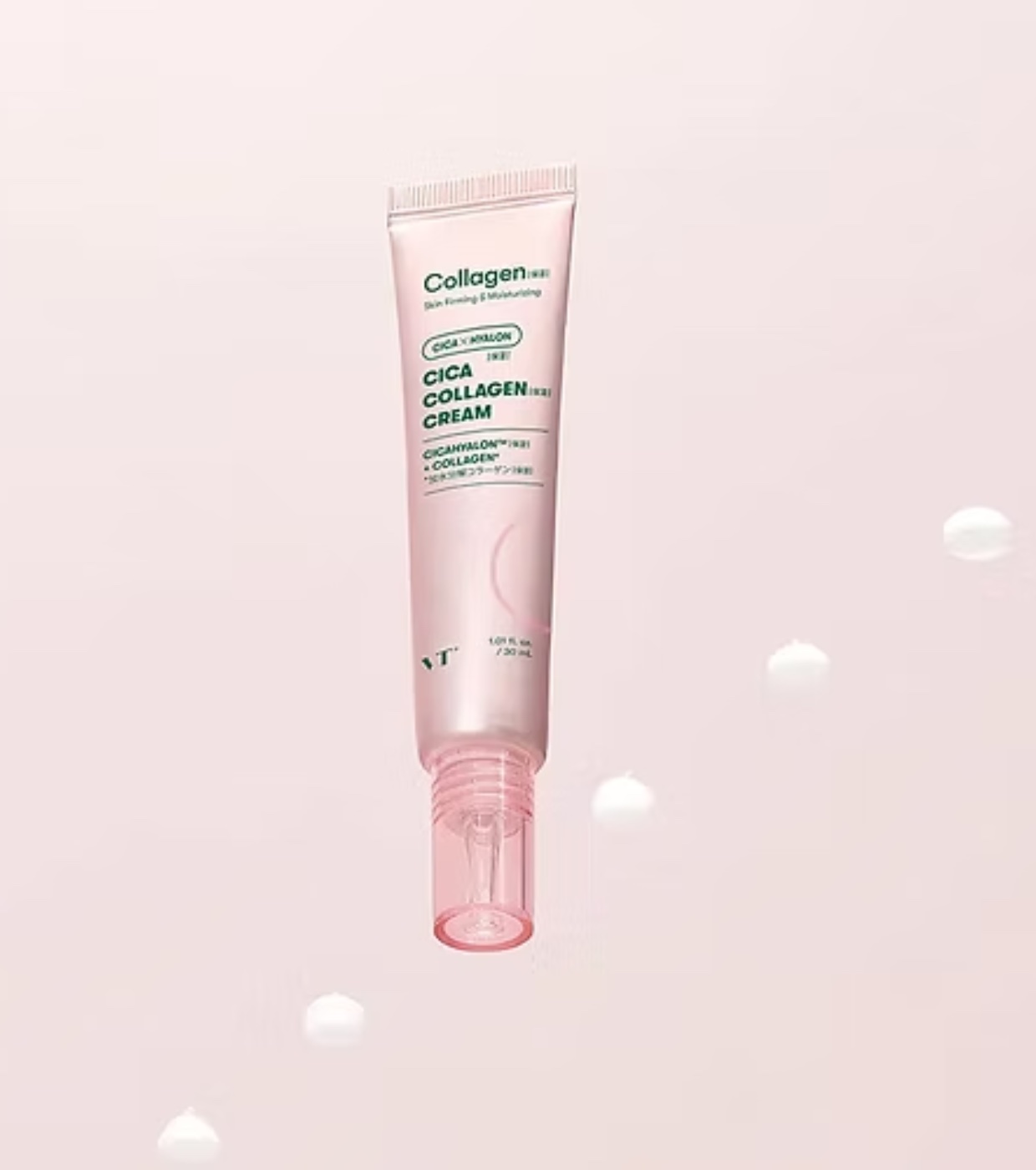 VT Cosmetics ' VT Cica Collagen Cream is a cutting-edge Korean facial cream that combines low molecular weight marine collagen (300 Da) and a concentrated Centella Asiatica complex to restore elasticity, soothe irritations, and provide deep hydration, even for sensitive or mature skin.