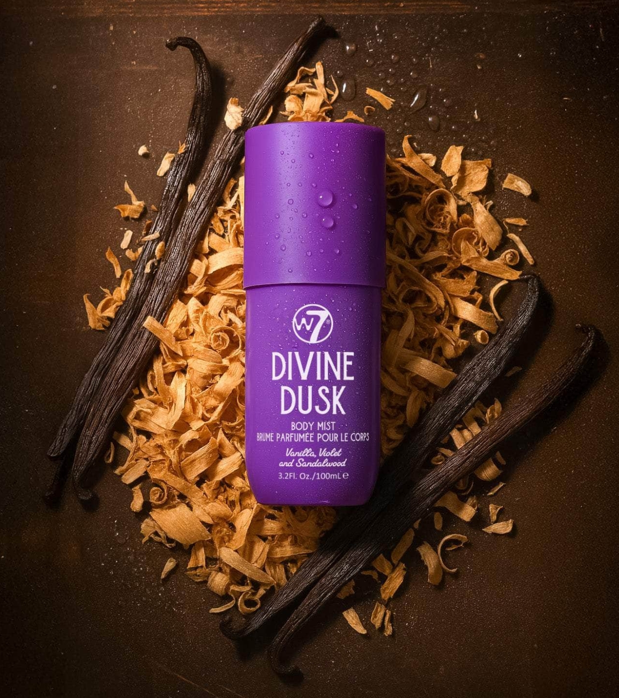 Divine Dusk is a sensual blend of vanilla, violet, and earthy sandalwood.