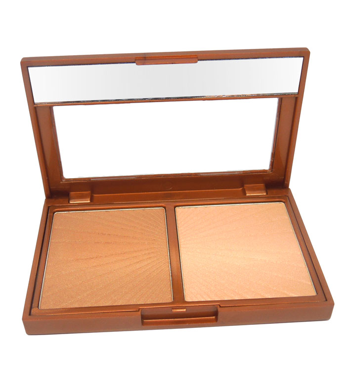 Duo palette that contains satin bronzer and illuminator with brightness, both with very subtle golden highlights and a medium pigmentation. You can outline and illuminate your face, creating effects that you favor as well as a natural and sophisticated finish.