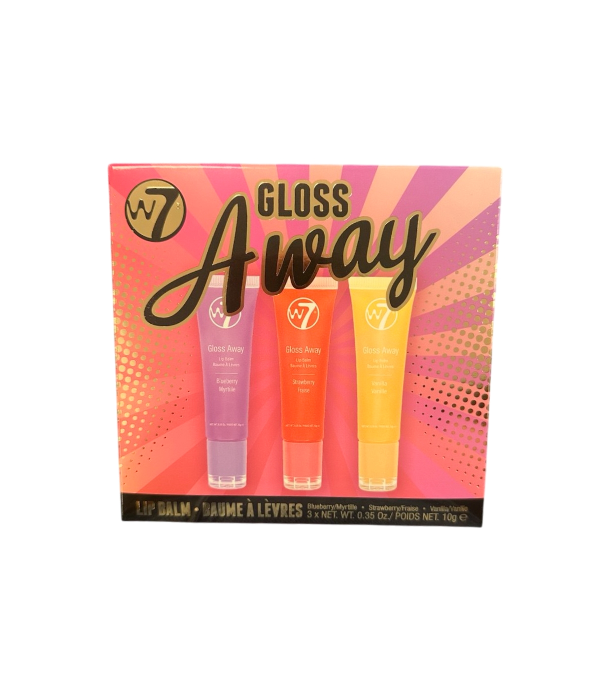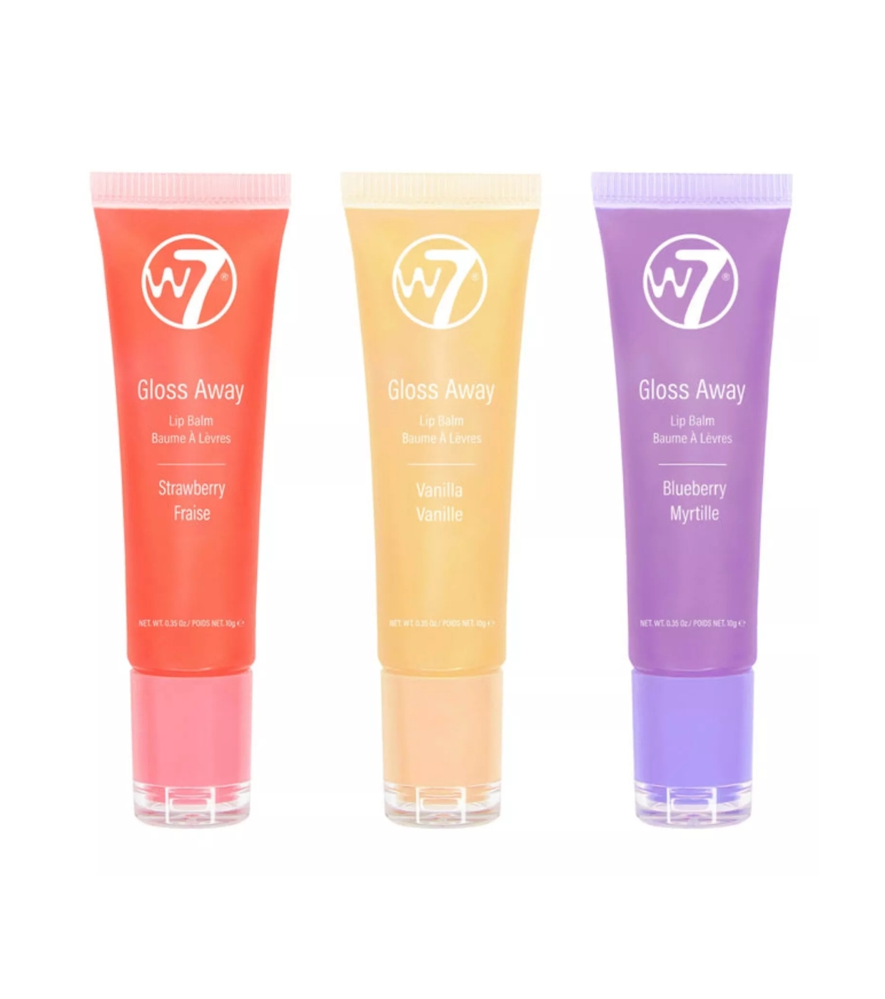 Hydrate and add a touch of sweetness to your lips with the W7 Gloss Away Set , a pack of 3 lip balms with irresistible flavors.