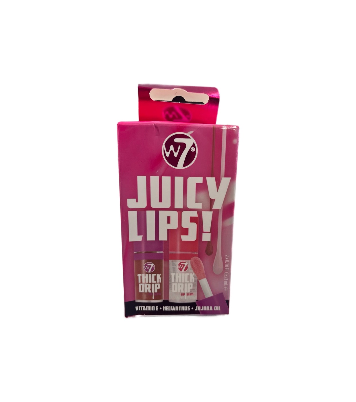 Give your lips a juicy and hydrated finish with the W7 Juicy Lips Set , a pack of 2 Thick Drip glosses that provide intense shine, softness and an irresistible volume effect.