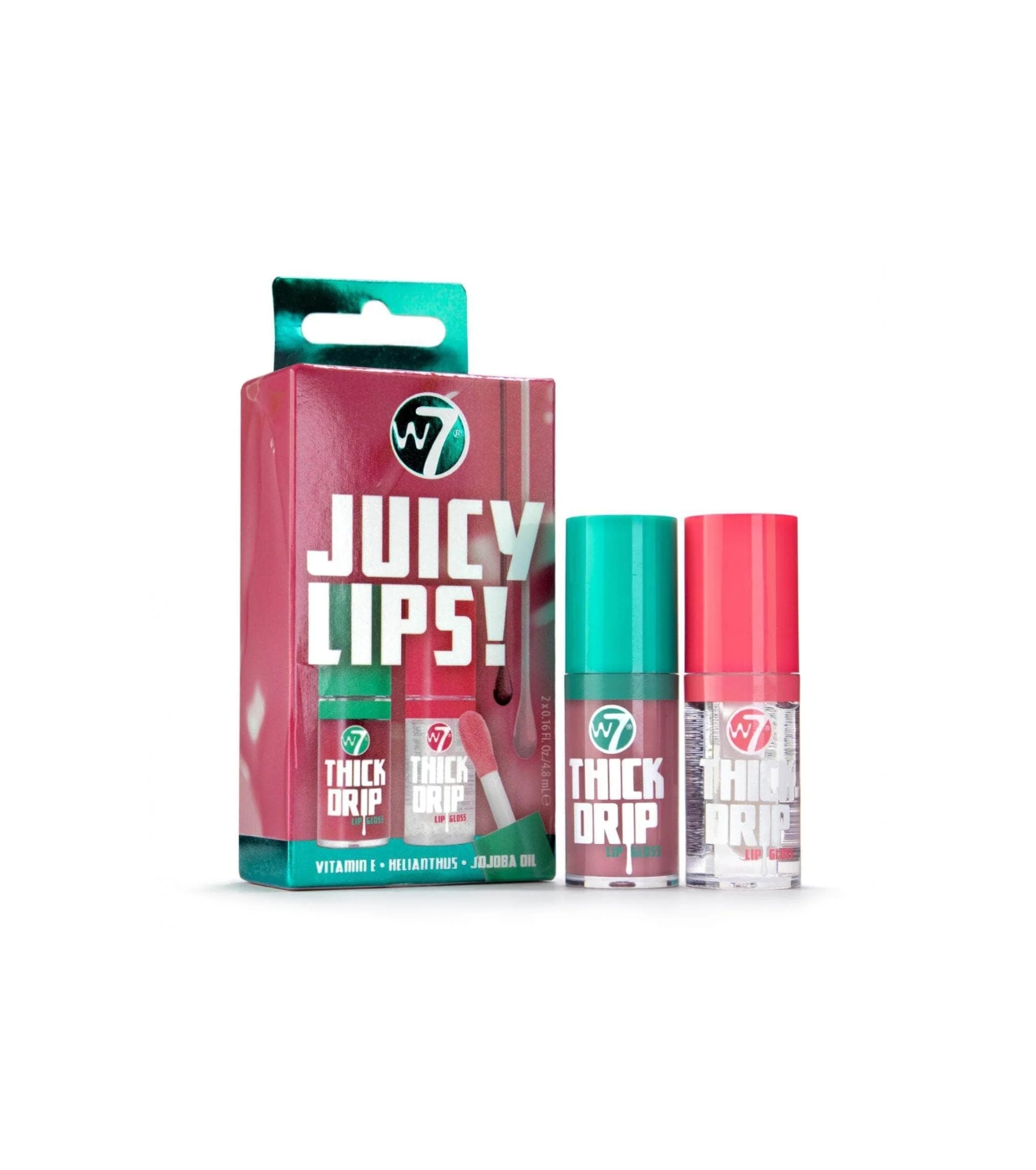 Give your lips a juicy and hydrated finish with the W7 Juicy Lips Set , a pack of 2 Thick Drip glosses that provide intense shine, softness and an irresistible volume effect.