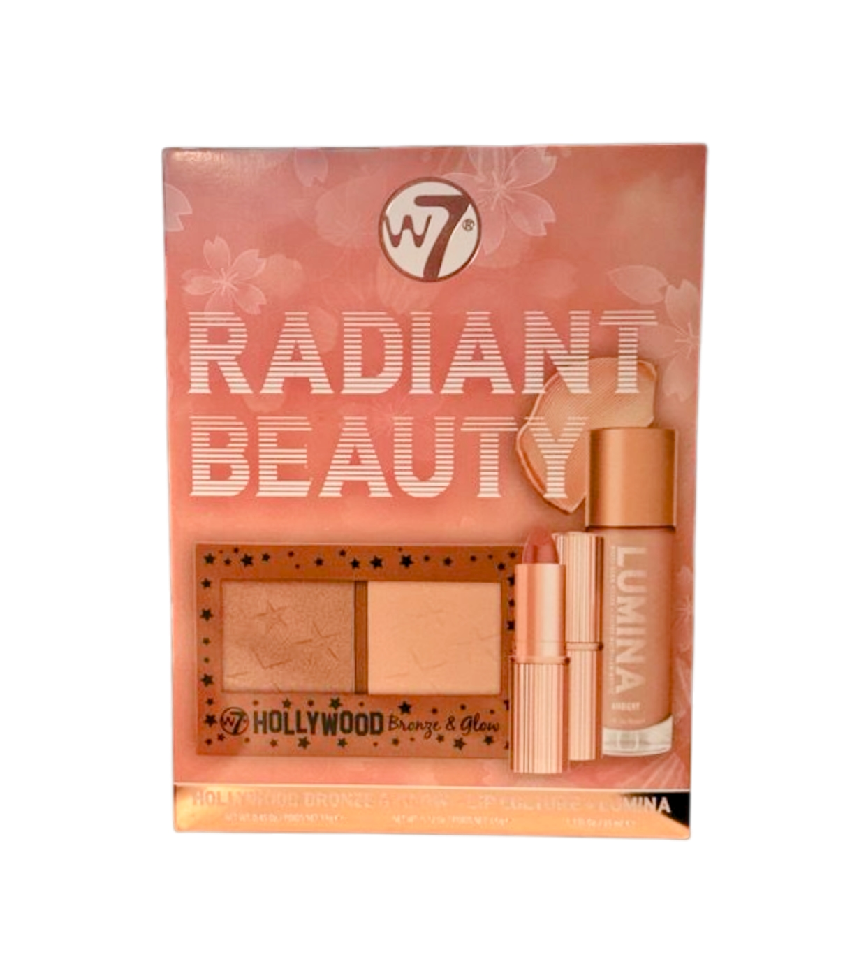 Show off radiant and luminous makeup with the W7 Radiant Beauty Set , a trio of essentials that enhance your face and lips with a sophisticated and glamorous finish.