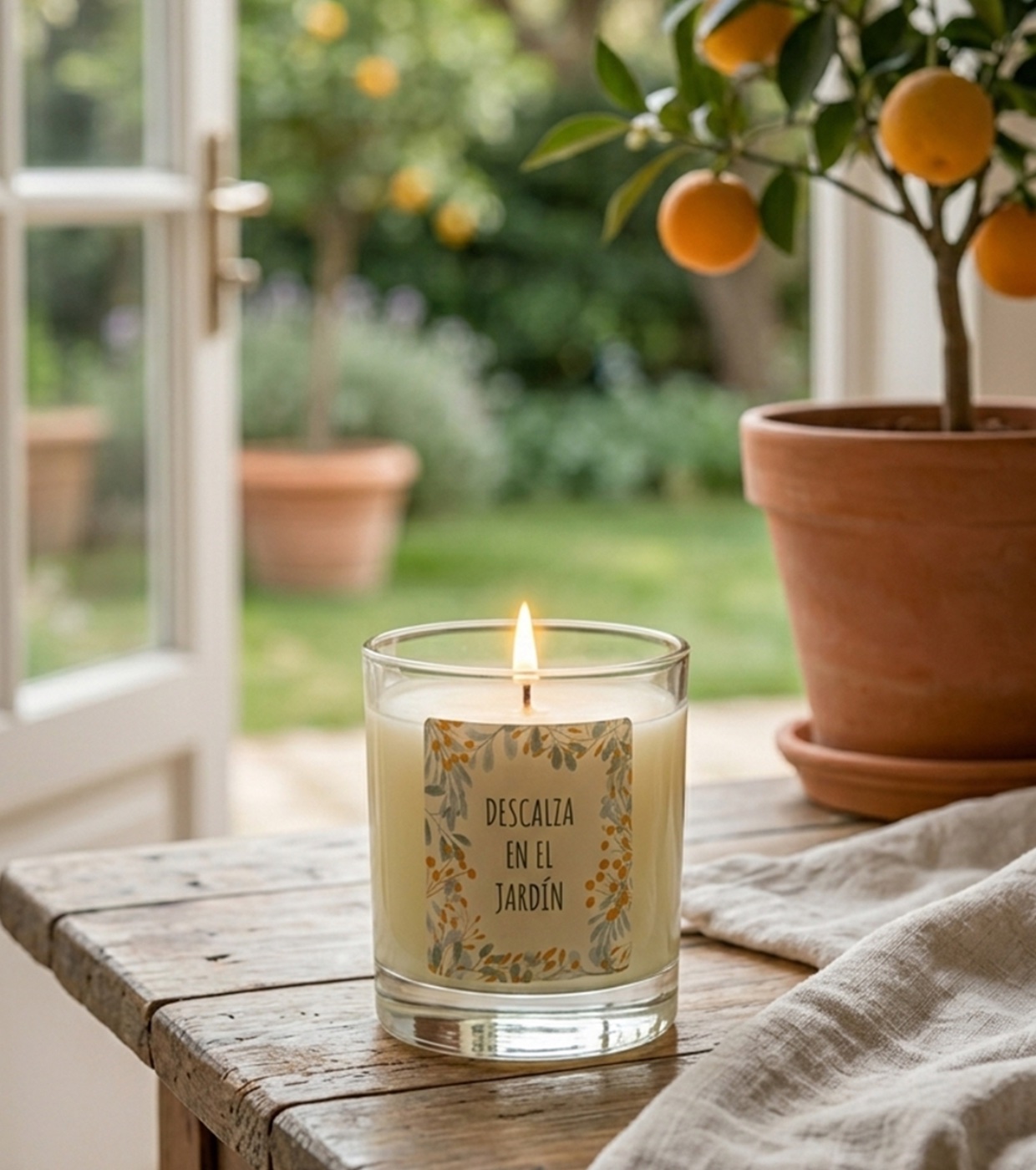 Wailoha 's scented candle “Descalza en el jardín” transforms any space into a haven of calm, soft light and clean air.
