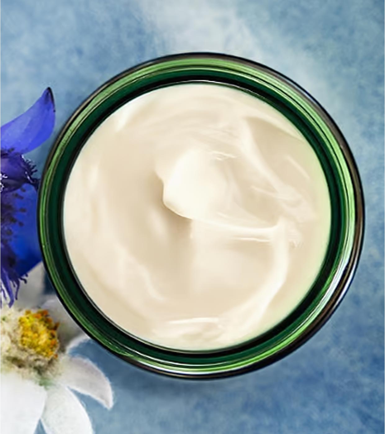 Water (Aqua) Glycerin Olea Europaea (Olive) Fruit Oil Helianthus Annuus (Sunflower) Seed Oil Pentylene Glycol Butyrospermum Parkii (Shea) Butter Ricinus Communis (Castor) Seed Oil Cetearyl Alcohol Hectorite Alcohol Plukenetia Volubilis Seed Oil Copernicia Cerifera (Carnauba) Wax Gentiana Septemfida Flower/Leaf/Stem Extract Blue Gentian Leontopodium Alpinum Flower/Leaf/Stem Extract Edelweiss extract Olea Europeae (Olive) Leaf Extract Olive-leaf extract Betaine Xanthan Gum Citric Acid Tocopherol Cetearyl Glucoside Cetearyl Olivate Sorbitan Olivate Glyceryl Caprylate Sodium Stearoyl Gluatamate Silica Fragrance (Parfum) Limonene Linalool Benzyl Benzoate Geraniol Citral
