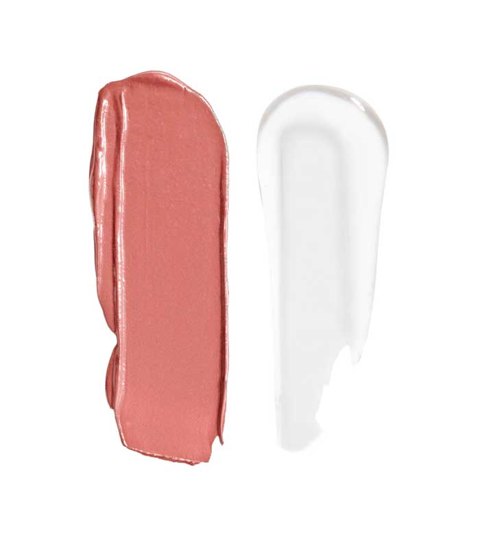 You can apply only the colored end or give it an intense gloss for glowing lips.