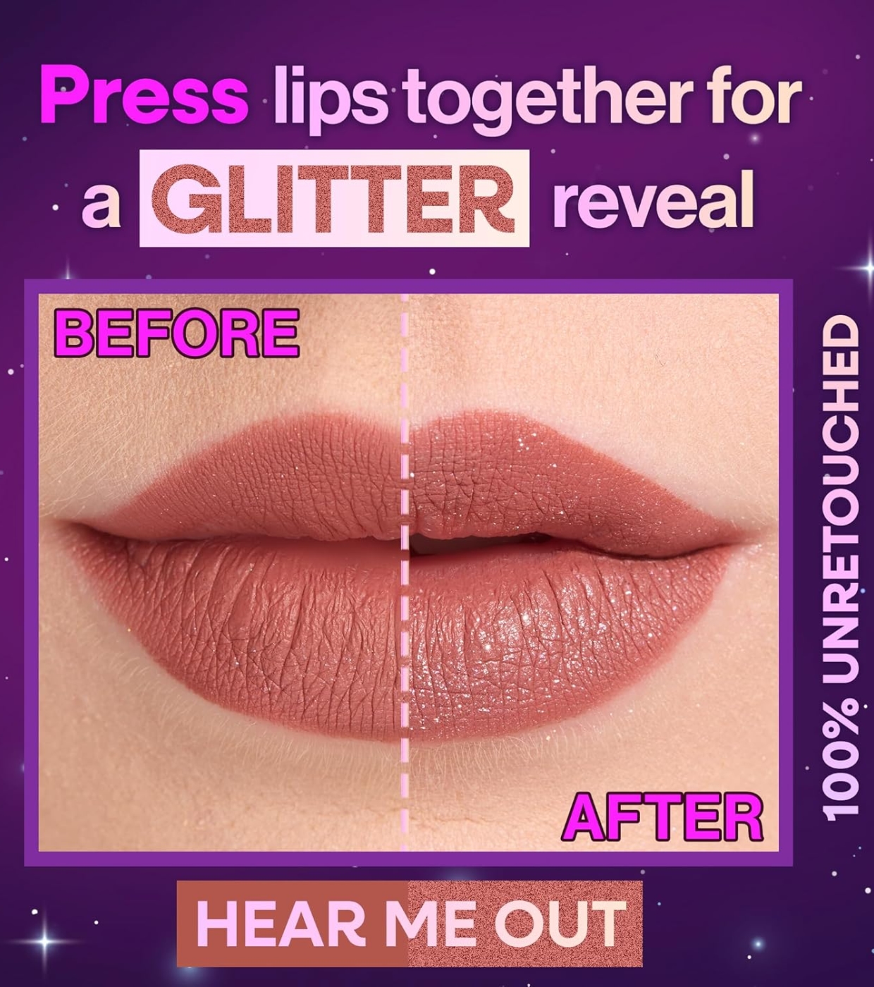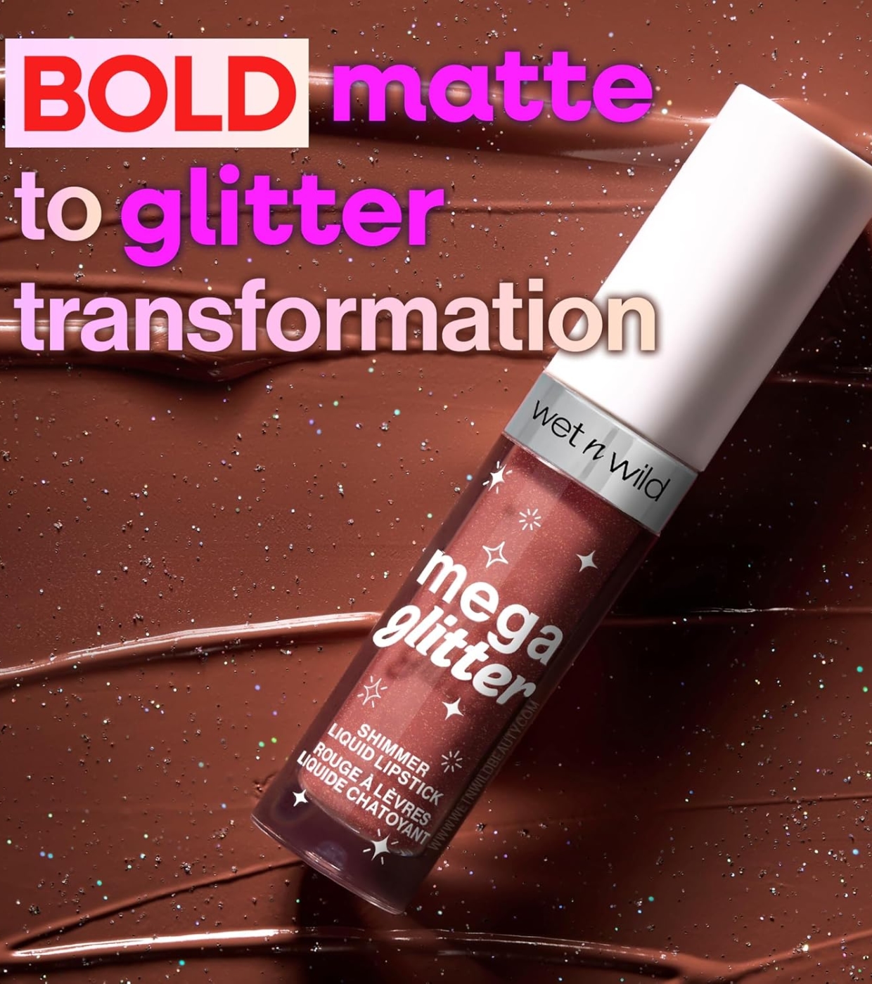 Get ready to dazzle! Mega Glitter Shimmer Liquid Lipstick Mega Glitter Shimmer Liquid Lipstick transforms your look in seconds with its innovative formula that goes from a matte finish to a dazzling shine simply by pressing your lips together.