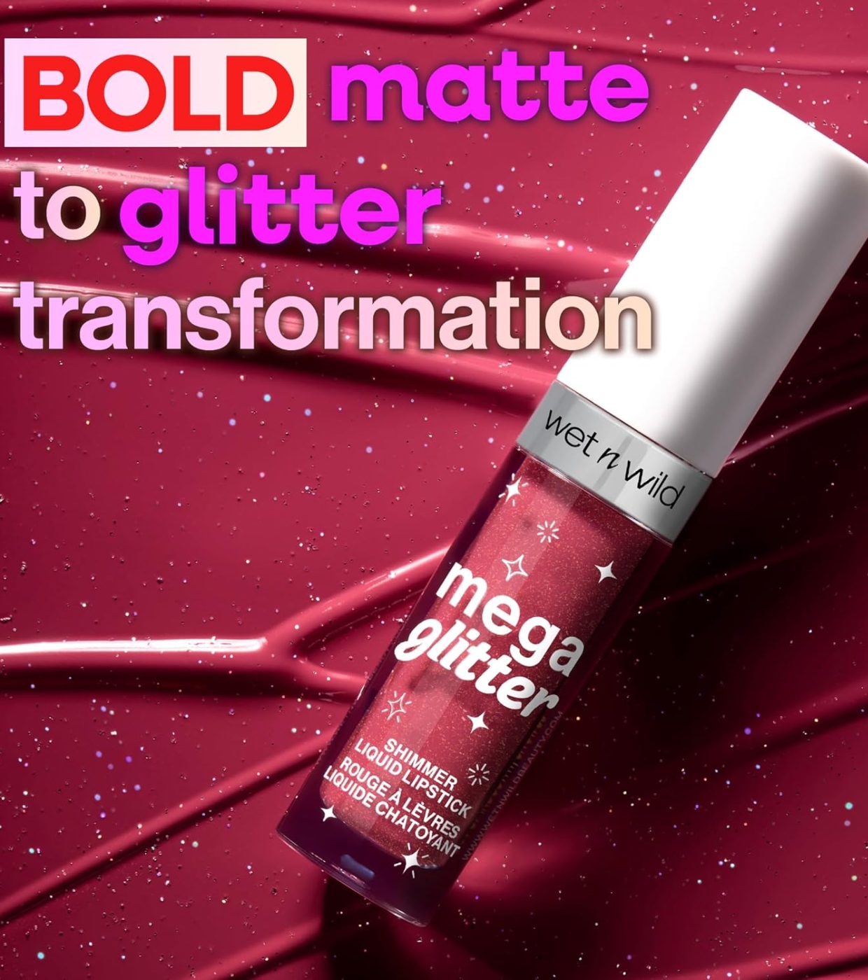 Get ready to dazzle! Mega Glitter Shimmer Liquid Lipstick Mega Glitter Shimmer Liquid Lipstick transforms your look in seconds with its innovative formula that goes from a matte finish to a dazzling shine simply by pressing your lips together.