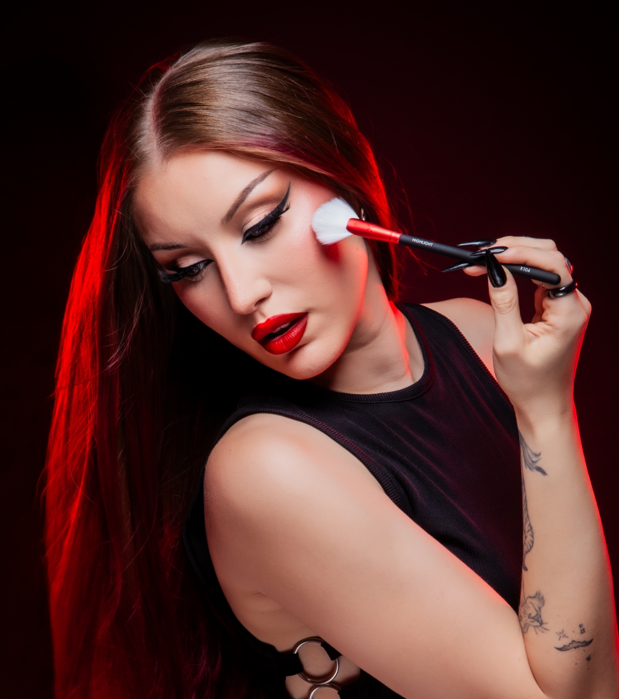 No more boring highlighter brushes! With the high-quality, hand-assembled X104: Highlight highlighter brush from Xtra Pro MakeUp , you can apply cream and powder highlighter to illuminate your face in different intensities.