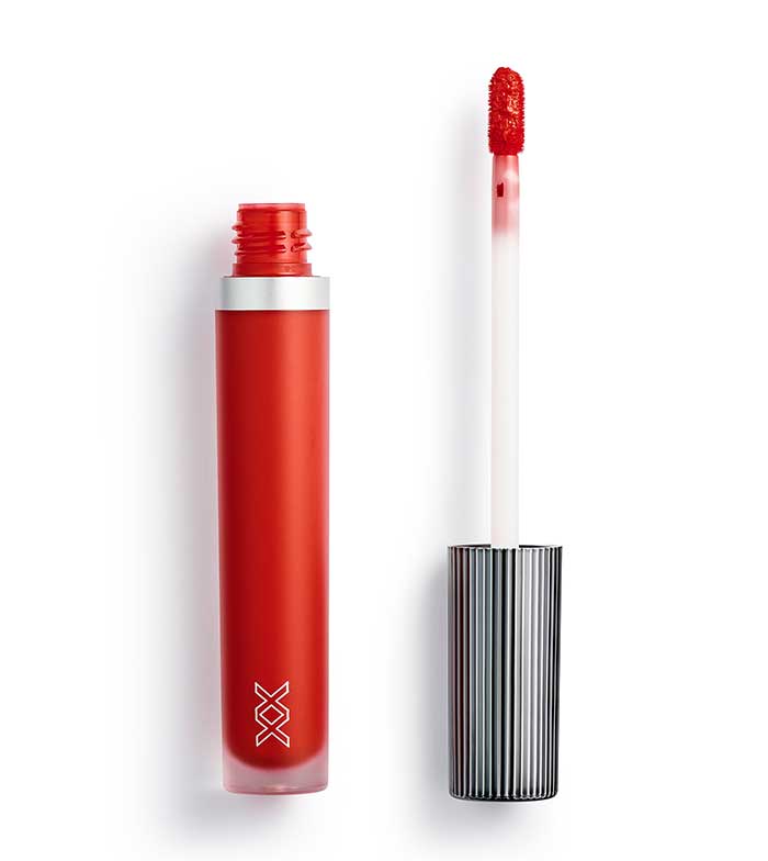 Liquid lipstick XXude Satin, with a matte finish and high coverage.