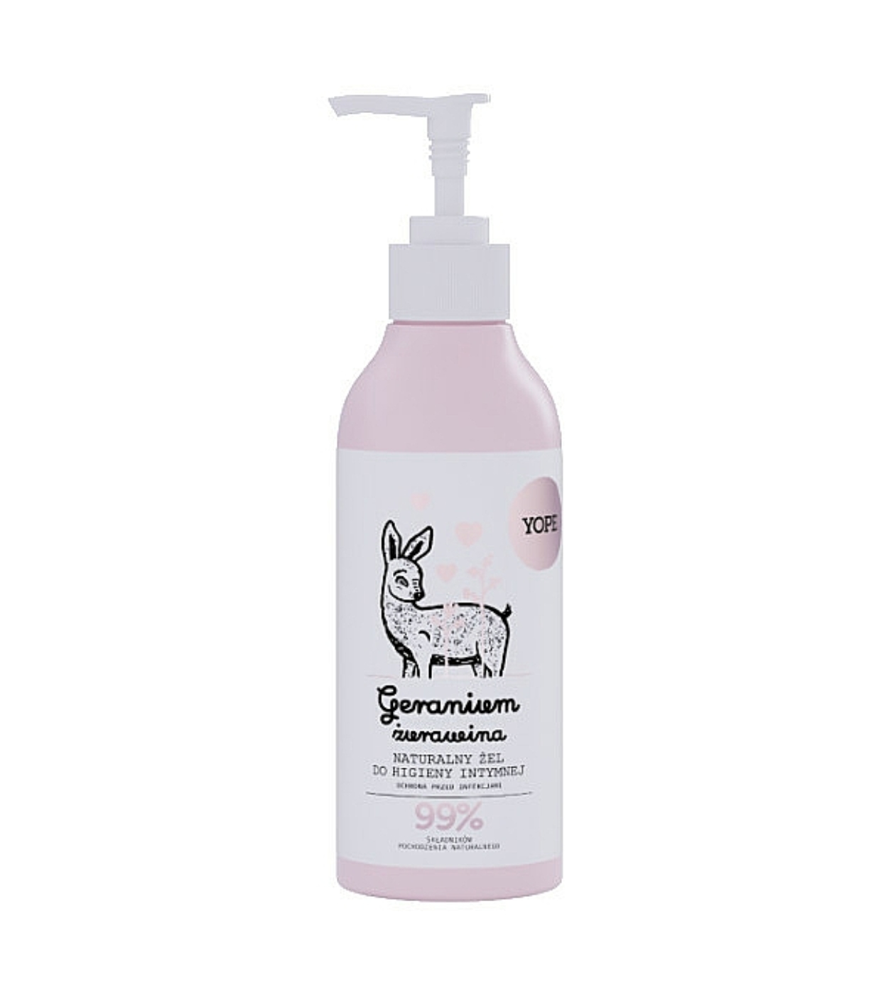 Yope's geranium and cranberry intimate gel is a gentle, foaming gel that gently strengthens the microbiome to protect sensitive areas from irritation.