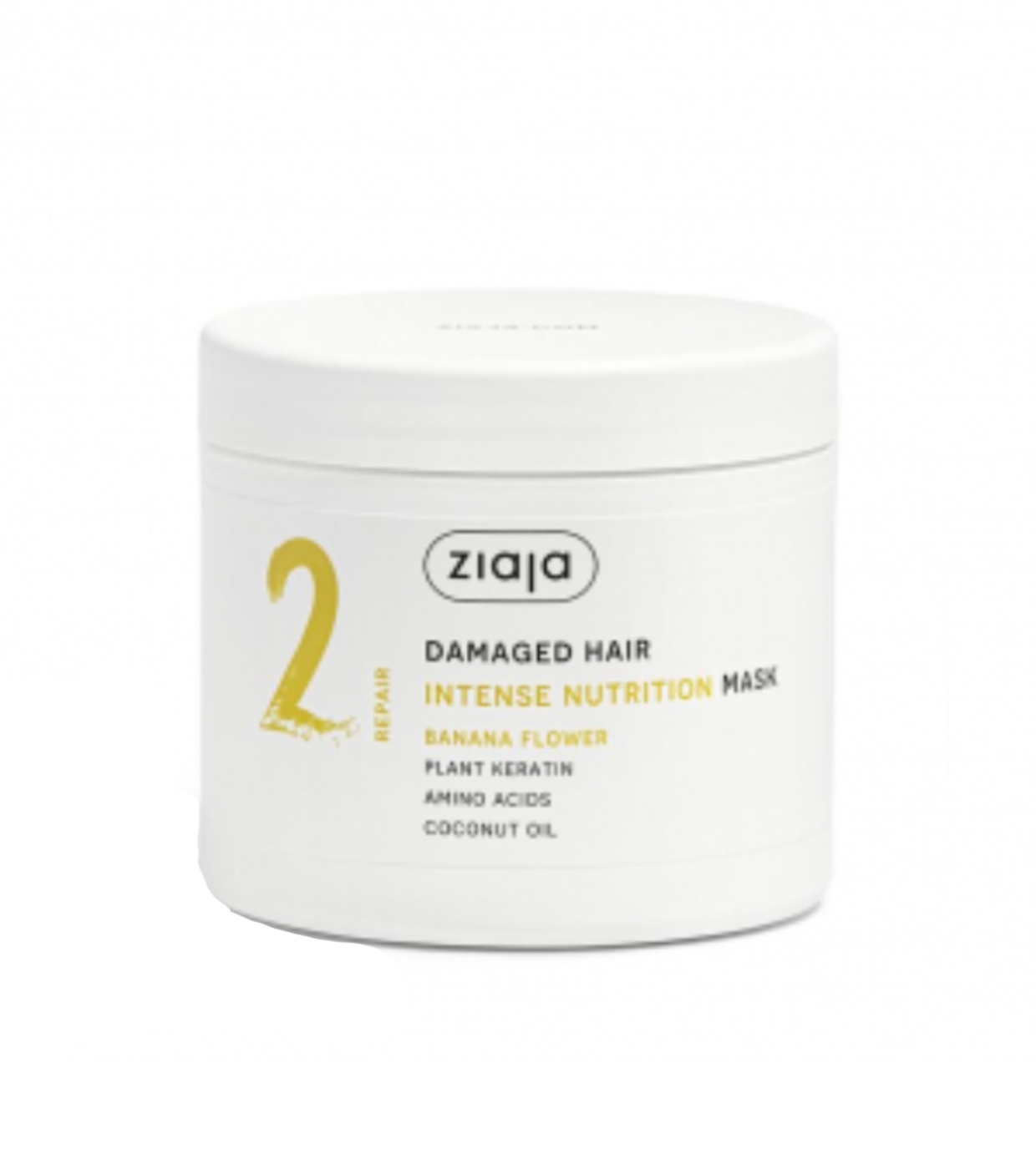 With 98% ingredients of natural origin, the Banana Flower Intensive Nutrition Mask by Ziaja is designed for damaged hair, providing deep repair and restoring vitality to the hair.