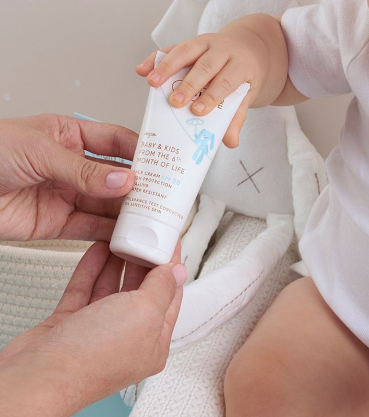 Baby & Kids Baby & Kids Waterproof SPF 50 Face Cream is specially designed to protect little ones' skin from sunlight and HEV blue light.