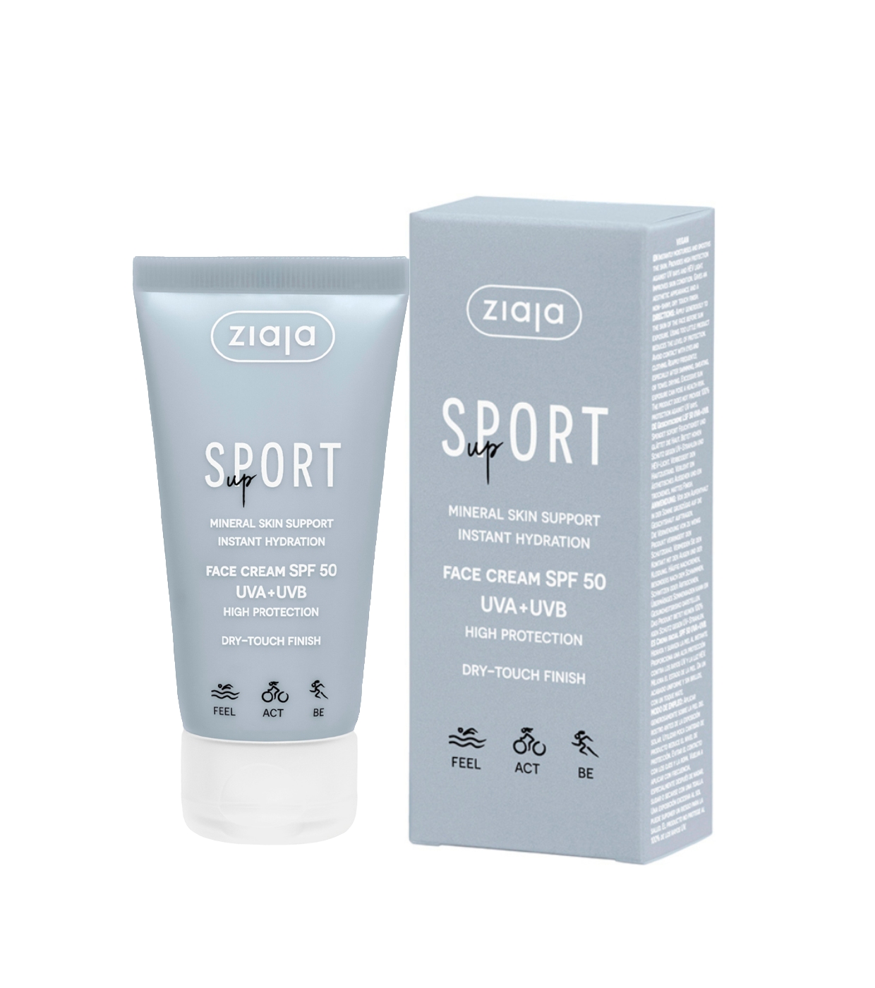 Ziaja Sport Light Face Cream with SPF 50 offers instant hydration and broad-spectrum sun protection, protecting your skin from UVA, UVB, and blue light (HEV) emitted by electronic devices.